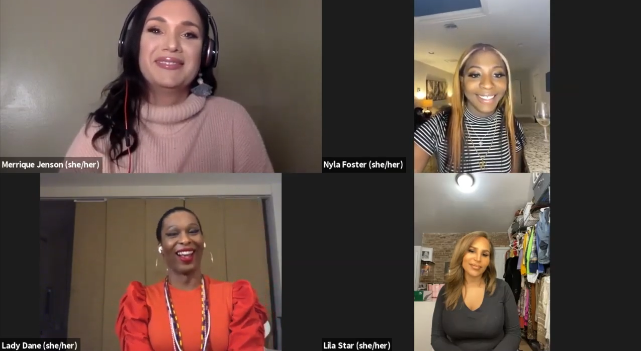 In March, AmericanTheatre.org began publishing the first Dispatches from Quarantine, of which there are now nearly 40 entries to date. Later in the year, we kicked off bi-weekly AT: Offscript conversations featuring the AT Editors and special guests on Facebook Live. In the fall, we produced our first virtual AT Live: Artist Activist Table Talk in conjunction with the special magazine issue on trans and gender non-conforming theatre artists and their challenges and triumphs in the field. (Above: Merrique Jenson, Nyla Foster, Lady Dane Figueroa Edidi, and Lila Star Escada from AT Live: Artist Activist Table Talk)