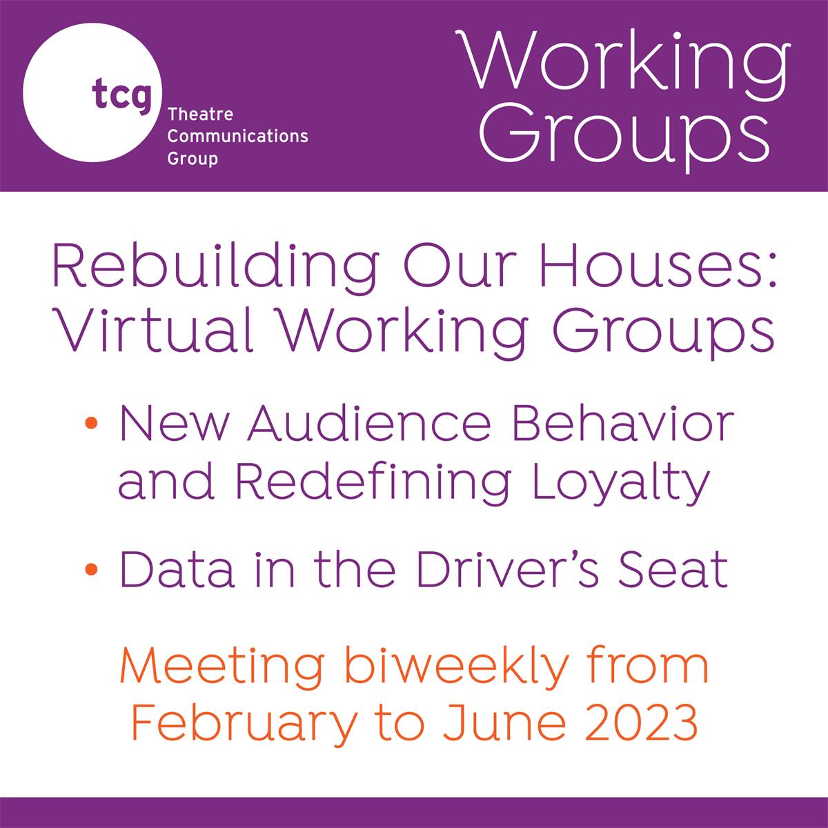 The LAB offered us further insight into the audience-related questions that are keeping theatre people up at night, and we’ve designed containers for different pieces of those conversations in the form of peer-facilitated virtual working groups. Each group will have a specific focus and intention, and will offer a combination of facilitated, emergent conversation, and topic-relevant case studies presented by your peers and TCG partners, some shared over the course of several meetings for truly deep dives.