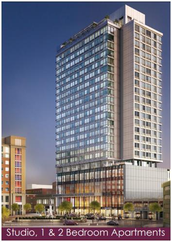 With panoramic views, this majestic tower looks out over downtown New Brunswick. The contemporary studio, one and two bedroom apartments feature stainless steel appliances, spacious closets, and stunning views. Community amenities include: rooftop pool and sky lounge complete with an outdoor fire pit and kitchen, a fitness center, co-work and meeting space and karaoke room. The building is pet friendly, has bike storage and is secure with a 24-hour lobby attendant. Apply Now!